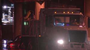 Flooding causes sewage to spill onto roadways in downtown Houston
