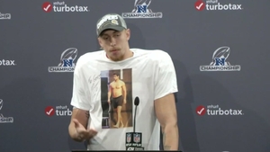 Super Bowl-bound 49er celebrates with shirt of his shirtless QB