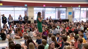 Elita Loresca visits with Wilchester Elementary