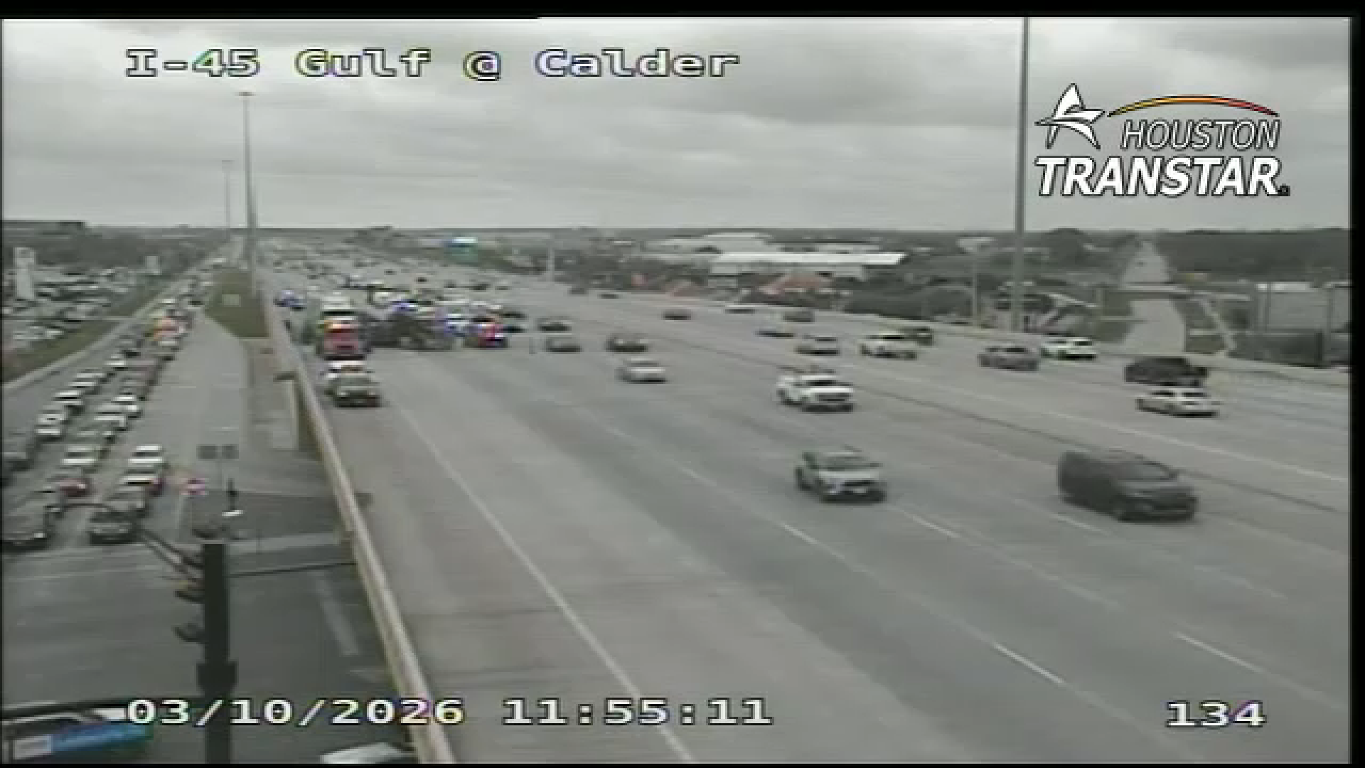 Houston TranStar cameras captured images of the incident, showing the multiple lanes closed as crews worked to clear the wreckage.