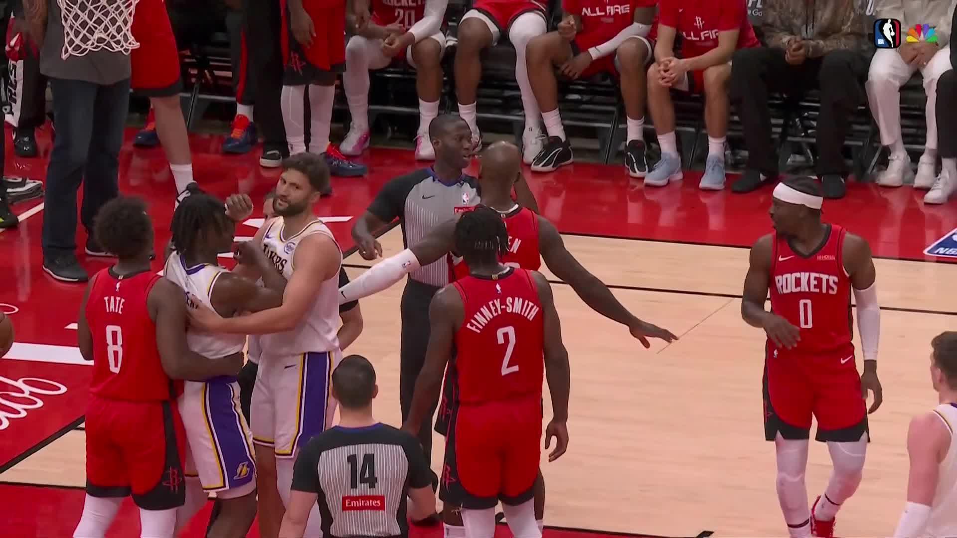 Houston led by 23 with about 7 minutes remaining when coach JJ Redick cleared the Lakers' bench.