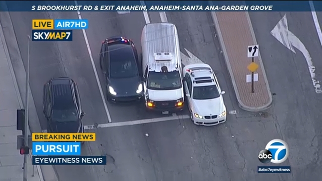 Our sister station KABC's news chopper was overhead as authorities chased the suspect who was speeding erratically in a black Honda Civic on surface streets in Anaheim.