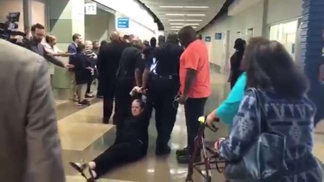 "I wasn't moving. I didn't want to leave because it's such an important vote. The HISD police officers started pushing me. I stood my ground. They grabbed my arms and started pulling me," Espeseth told ABC13.