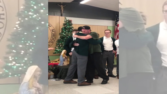CHERRY HILL, New Jersey -- A dining hall employee got an early Christmas surprise he will never forget from the students and faculty at Camden Catholic High School.