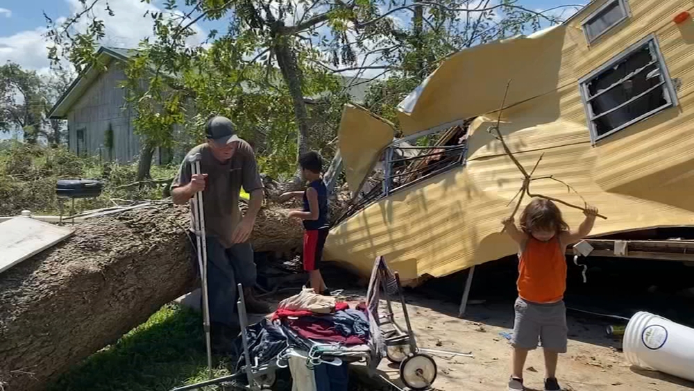 A neighborhood in Freeport took on wind damage, such as downed trees. Some homes lost power and water. One business had some sheet metal peeled off, as well as a snapped power pole with the lines hanging. But so far, there have not been reports of any injuries.