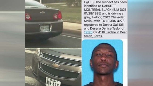 Black fled the scene in a 2012 Chevy Malibu and was captured Thursday evening in Waller County. Officials plan to file capital murder charges against Black.