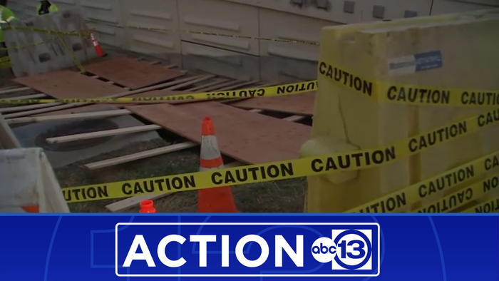 "You or your dog could potentially fall in because it's grass, grass, grass, sudden drop," a park goer told ABC3. The hole is about eight feet deep and fifteen feet across, exposing gravel and dirt near I-45.